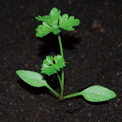 やさしい芳香で苦みも少ないパセリ品種。鮮やかな緑色のちぢみのない平らな葉は、洋風から和風まで様々な料理の味を引き締めます。プランターでも簡単に栽培して周年楽しめるハーブです。