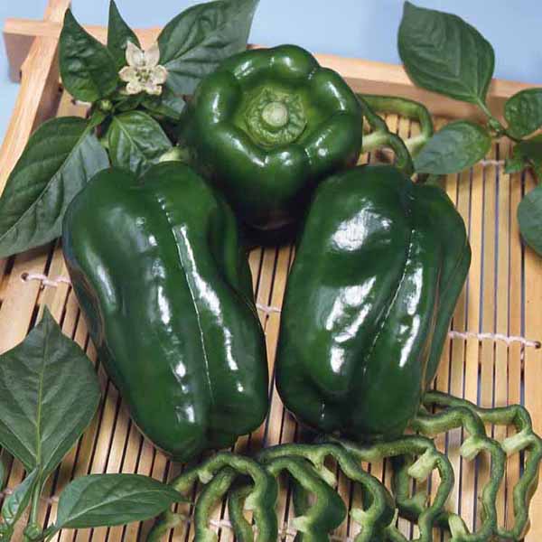 果実は濃い緑色で果肉やわらかく食感の良いピーマン。夏の暑さによく耐え、病気にも強いので作りやすい。草勢強く分枝も旺盛で、早くからたくさん収穫できる早生種です。