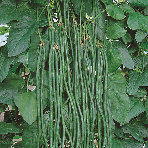 50cm近くにもなる若莢を利用する、太く濃緑に改良したササゲです。熱帯地方原産ですので暑さの中でもつるを伸ばして成長し、次々と収穫できる豊産品種です。