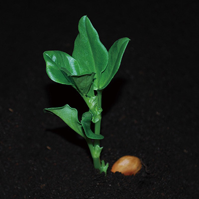 ボリュームのある大粒の豆が期待できる品種。生育旺盛で作りやすく、ひとつの莢に2~3粒入ります。食感は超ホクホク系で、濃厚で深みがあり、上品な甘味で品質の優れたソラマメです。