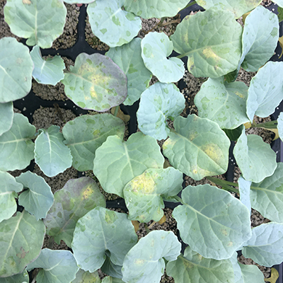 ブロッコリーの病気・害虫・生理障害 小 大 文字サイズ 黒腐れ病 病気 【黒腐れ病】 雨の多い時に発生し、葉の周辺から黄色くなってくるのが特長です。風雨によって土のはね返りで感染します。病気に侵された葉は二次感染の伝染源になりますので、早目に畑から持ち出し処分します。 黒斑細菌病 病気 【黒斑細菌病】 雨などのはね返りによって侵入して起こる病気です。台風などの風雨で株が傷ついた場合などに多発します。病気に侵された葉が二次的な伝染源になるので、病気に罹った葉は摘んで早目に畑から除去しましょう。 べと病 病気 【べと病】 葉の裏に灰色のカビが生える病気です。気温が15~20℃位で多湿条件が重なると発生しやすく、カビから胞子が飛び周囲に伝染して広がっていきます。収穫物の花蕾にも黒変する病状を示す場合もあります。陽当たりと風通しを良くすることが大事です。 ヨトウムシ類 害虫 【ヨトウムシ類】 成虫が卵をまとまって生み落とし、孵化した幼虫が集団で食害を始めます。短期間に葉脈を残して食べつくされることもあるので見つけ次第早急に駆除する必要があります。 ホウ素欠乏症 生理障害 【ホウ素欠乏症】 植物の生育、特に細胞壁の形成に必要なホウ素の欠乏によって引き起こされる生理障害。亀裂が生じてその後コルク化してかさぶたのようになりますが、食用に問題ありません。畑の肥料成分のバランスが崩れている可能性があります。堆肥などの積極的利用が有効です。