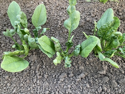 ホウレンソウの病気・害虫・生理障害 小 大 文字サイズ 萎凋病 病気 【萎凋病】 下葉から黄化が起こり、その後萎凋が進み最終的に枯死します。主に7~9月の高温期の夏どり栽培で発生する土壌伝染性の病気です。発病した畑での連作は避け、被害が甚大な場合は土壌消毒が必要です。 えそ萎縮病 病気 【えそ萎縮病】 アブラムシによって運ばれるウイルス病。初期は中心部に軽いモザイク症状があるだけですが、その後葉が縮れて萎縮し、生長が止まって下葉から枯れていきます。防虫ネットなどで防ぐなど、アブラムシの防除を徹底させる必要があります べと病 病気 【べと病】 春と秋の気温が15~20℃で雨天・曇天が続いた時に発生しやすいカビの病気。外葉から斑点状に黄変し、裏側に灰色のカビが生えてきます。肥料が多すぎて軟弱気味に生育した株に発生しやすいので多肥栽培を避け、株間を充分にとって風通しを良くします。 ホウレンソウケナガコナダニ 害虫 【ホウレンソウケナガコナダニ】 肉眼では見えない位小さい害虫です。土の中に生息してほうれん草の新芽部分を食害します。食害された葉には小さな穴があき、展開にすると奇形状態になり、ひどい場合は芯止まりとなります。残渣や未熟堆肥などが発生源と言われていますので注意しましょう。