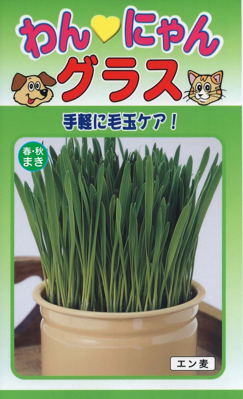 もっと短く1週間位で育ち、ワンちゃんやネコちゃんが毛づくろいをした時の飲み込んだ毛を吐き出すのに役立つ植物です。