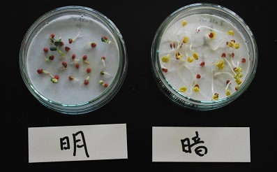 嫌光性種子の代表例はダイコンです。ダイコンを使った実験の様子を見てみましょう。