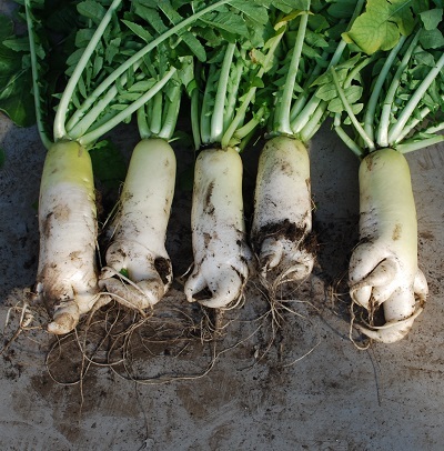 腕の良い人は、毎年の結果をもとに畑の耕し方や堆肥や肥料のやり方にも改良を加えています。力強くまっすぐに伸び、表面の肌もきめ細かく、あまくみずみずしい肉質のダイコンやカブ、風味豊かなニンジンやゴボウなど、自分なりに納得のいくものを収穫する道のりは決して容易ではありません。しかしだからこそ、そのような野菜作りのおもしろさに挑戦してみたくなるのかも知れませんね。