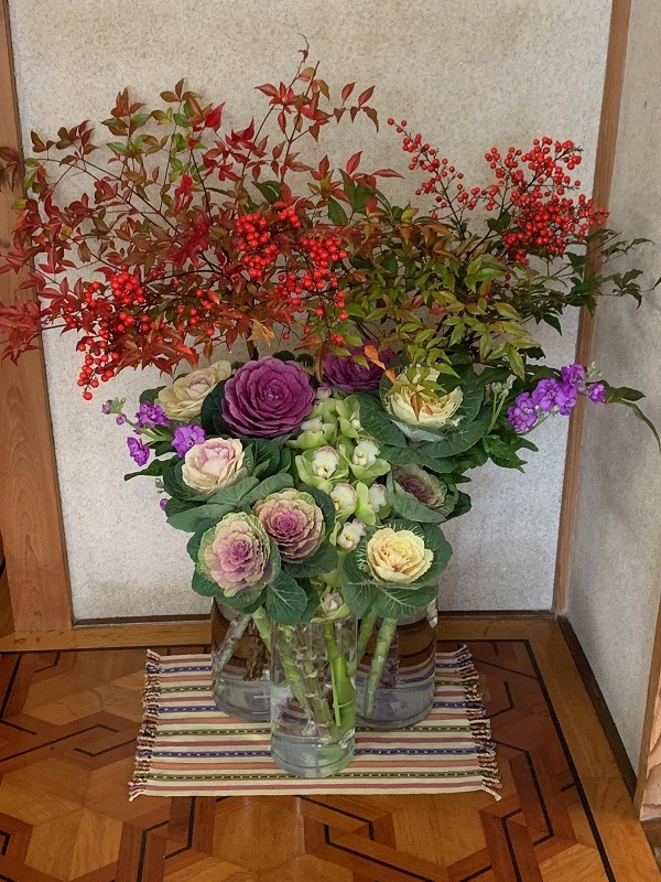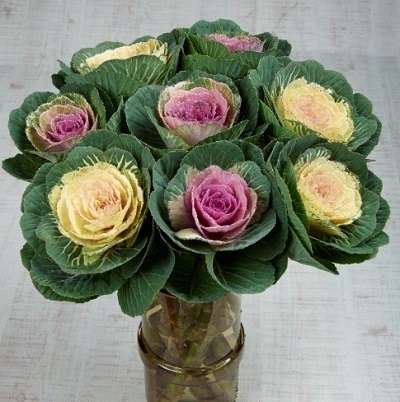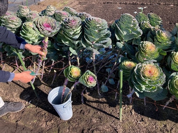 最近ハボタン(葉牡丹)は切り花で楽しむ方が増えてきています。茎が長く伸びる性質を持った品種ですからお正月飾りとして室内で生け花素材として使うこともできるとして人気が出てきました。
