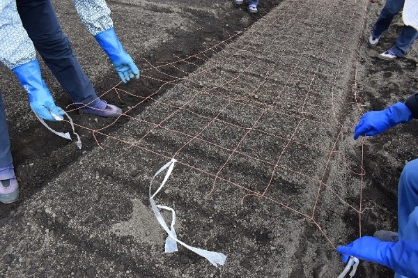きれいに発色させるために肥料のやり過ぎには注意し、倒れないように支柱やフラワーネットを利用します。植え付け時にこのようなフラワーネットをあらかじめ設置しておくと便利です。