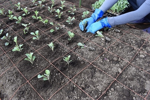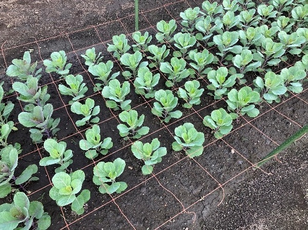 フラワーネットを使わない場合も、株間は約20cmが適当です。植え付けた後しっかりと水をやります。