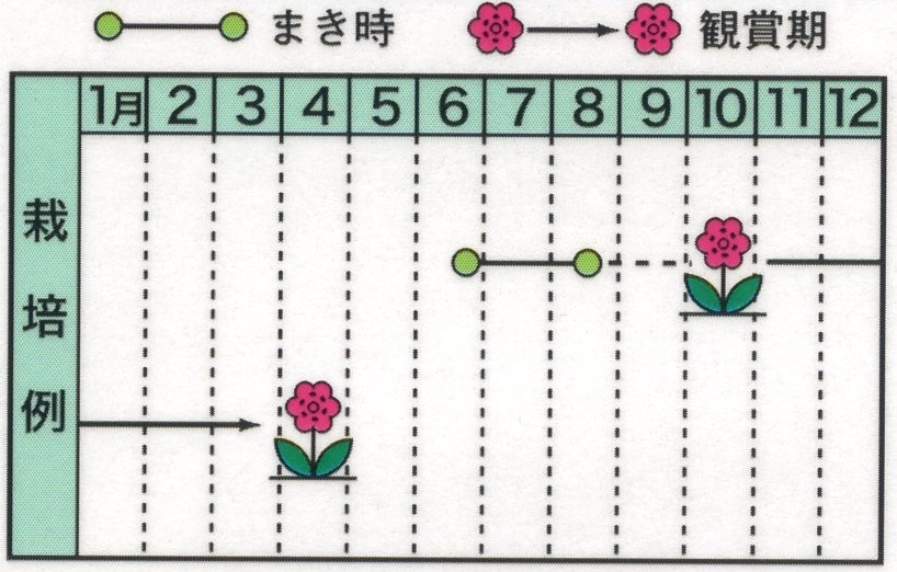 タネまきは6月下旬から8月中旬までが適期です。気温が高いと発芽が揃わないので、タネをまいたら発芽するまでの数日間は涼しい場所に置いておきましょう。