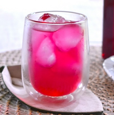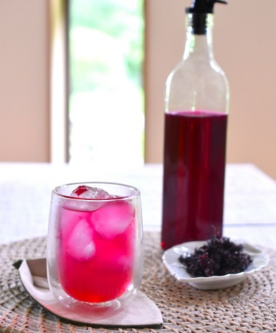 ザルに空けて漉し、赤しその葉も絞り、シロップを取る。消毒した瓶に入れ、冷蔵庫で保存する。冷蔵庫で1年間保存可能。