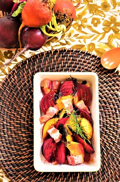 赤いサラダビーツと黄色のゴールデンビーツを使ったオーブン焼き