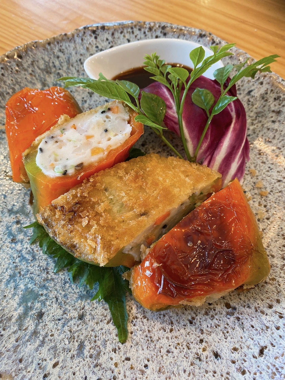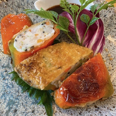 どでかピーマンのエビしんじょ包み揚げ