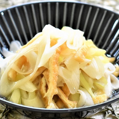 耐病ぼうず知らずねぎを使ったネギと油揚げのさっと煮