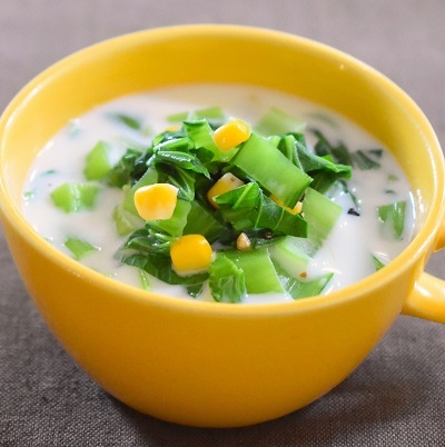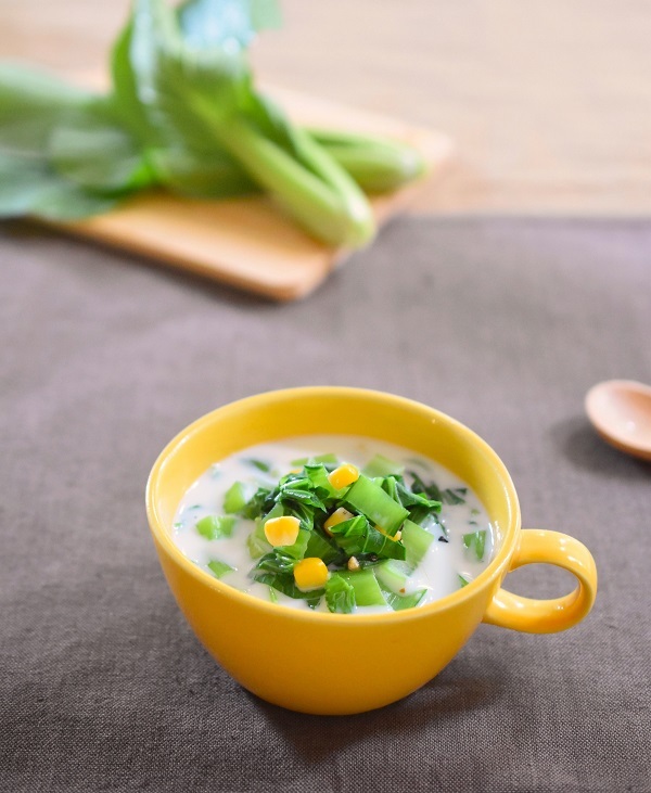 トウモロコシ、鶏ガラスープの素、水を加えひと煮立ちさせる。牛乳を加えて中火に落とし、鍋肌がフツフツしてきたら、しょうが汁、塩、ホワイトペッパーで味を調える。