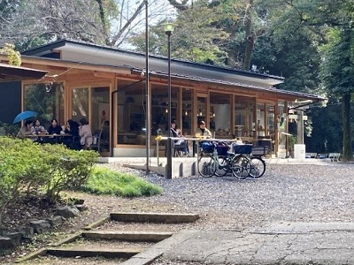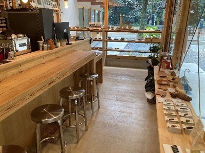 ここではもう本堂前の賑わいも聞こえず、木々の葉がこすれる音が流れる静かな空間です。優しい木漏れ日が差し込むその一隅にはテラス席もあり、開店間もない時間帯ですがすでに何人ものお客さんが席について和やかに過ごされています。