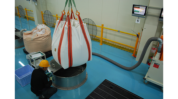 商品管理部で精選され自動倉庫に搬入されていた種子はその上層階で搬出され、充填室用のホッパー室に運ばれます。この搬出通路部分も含めて温度・湿度管理区域です。