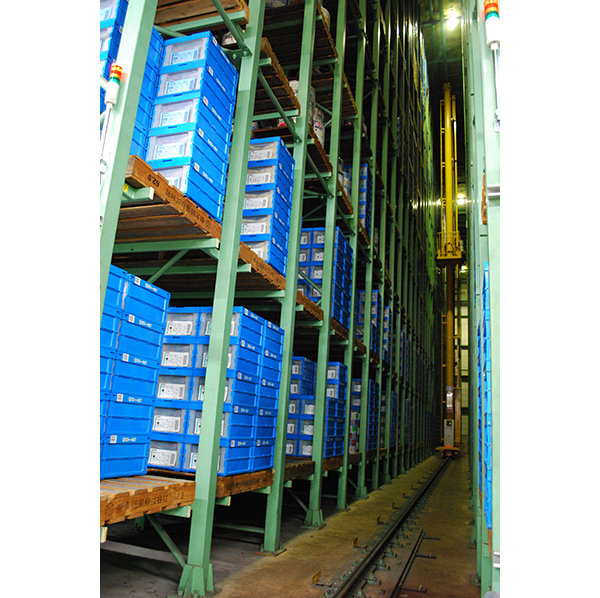 ここで商品ごとに仕分けられ、一時貯蔵庫に搬入されます。