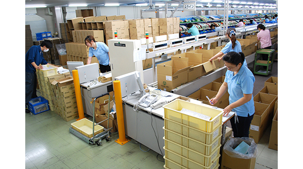作業の流れに滞りを生じさせないためには、それぞれの作業者の仕事量を均等にする必要があります。どの棚のどの位置にどの商品を置くか、商品棚への配置の仕方は、ピッキングラインを効率よく動かす上で最も重要なポイントです。一つでも多く荷造りができるよう、熟練社員が経験を踏まえて発送地域や季節に応じて棚割りを変更します。