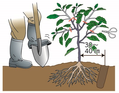8月頃、更新剪定(こうしんせんてい)または切り返し剪定を行います。真夏になると株が暑さで元気がなくなることがあります。そこで8月になったら主枝や側枝を先端から半分程度の位置で剪定します。