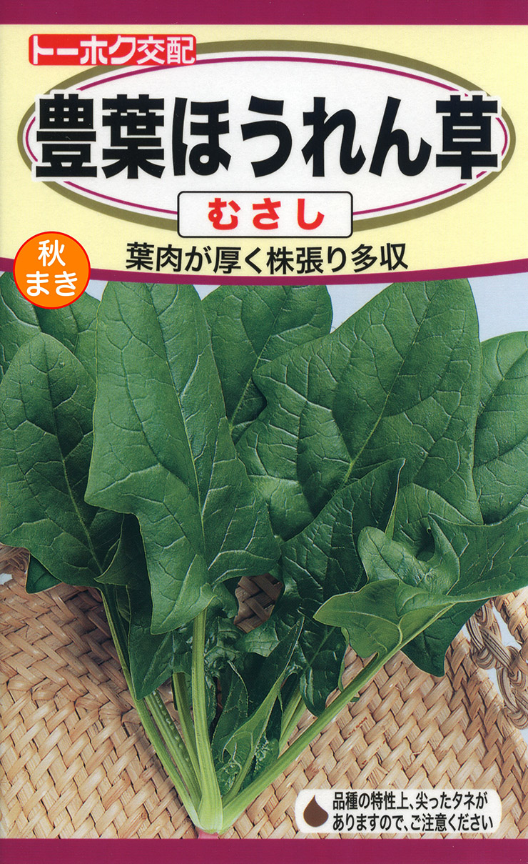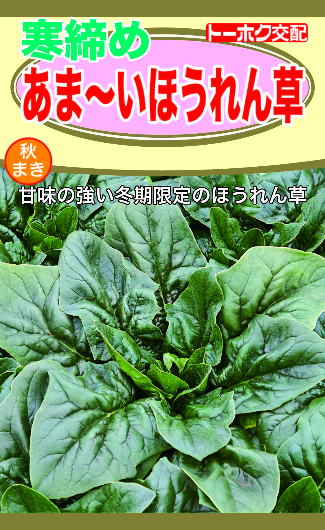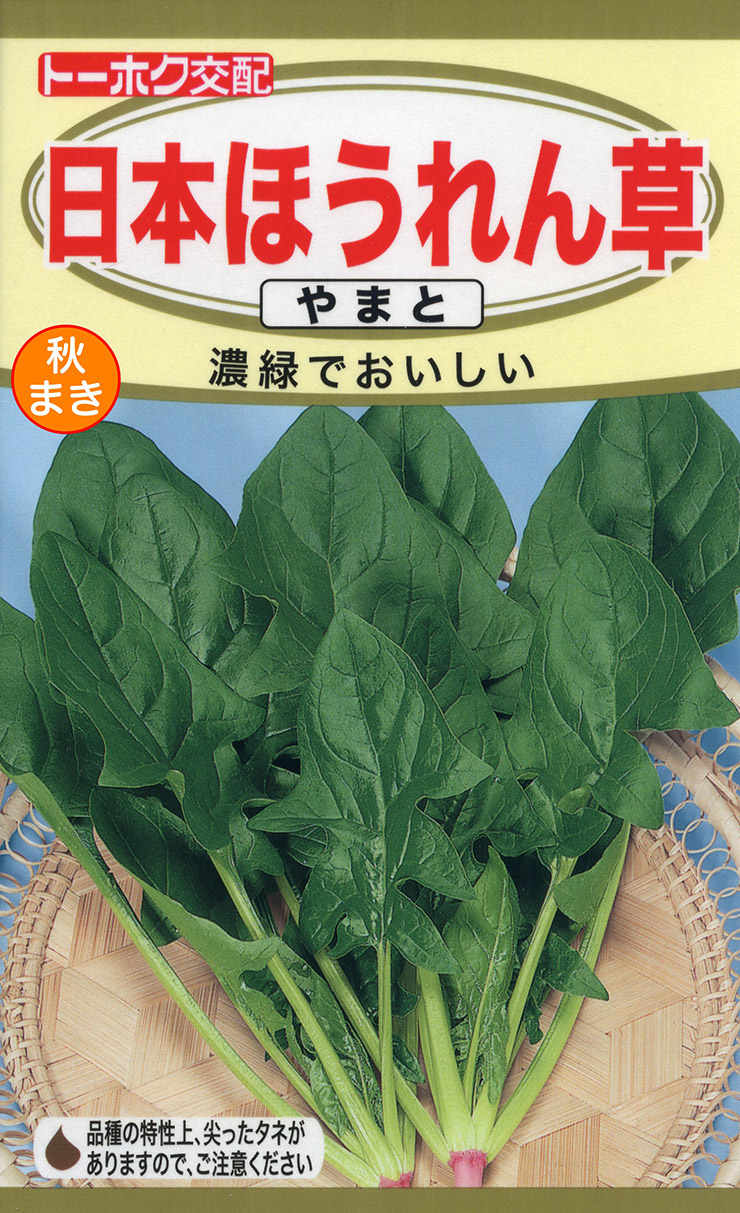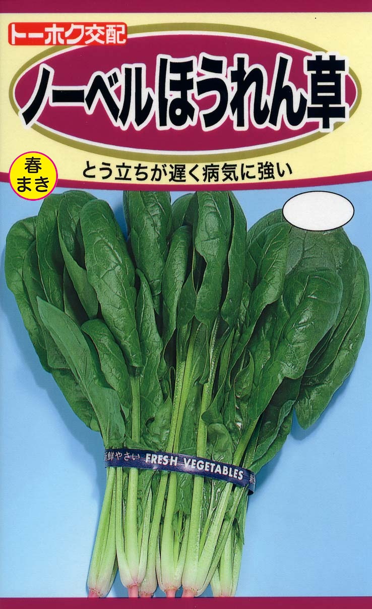 | 根も鮮やかな紅色となります。昔なじみのおいしいほうれん草の味を楽しめます。 | 暑さや病気強く、生育旺盛な早生品種。生育スピードがありやわらかく美味しい | 耐病性が極めて高く初心者にも作りやすい。葉は濃緑肉厚で畑に長く置けます | 立性で葉のからみが少なく、収穫時のロスも少ないので直売所出荷にも好適 | 葉肉が厚く、株張りよく収量が見込めます。寒さにも強く畑に長く置けます | ほうれん草の大敵べと病に強く、生育もゆっくりですから安心して栽培できます。 | 寒さに当ると格段に甘さが増す寒締め系。秋のうちに株を作ることがポイント | 切れ込み少なく丸みのある肉厚葉。西洋種ですがアクは少なく食べやすい | 西洋種ですがやや葉先はとがり、ちぢみ少なく大葉で収量の出るタイプ | やわらかく、アクの少ない美味しいほうれん草。生でサラダなどに向いています。 | 鮮紅色の葉で調理の彩りなどに重宝します。 | シュウ酸成分70%オフでサラダに最適。また下茹で不要で使える便利さも。 |