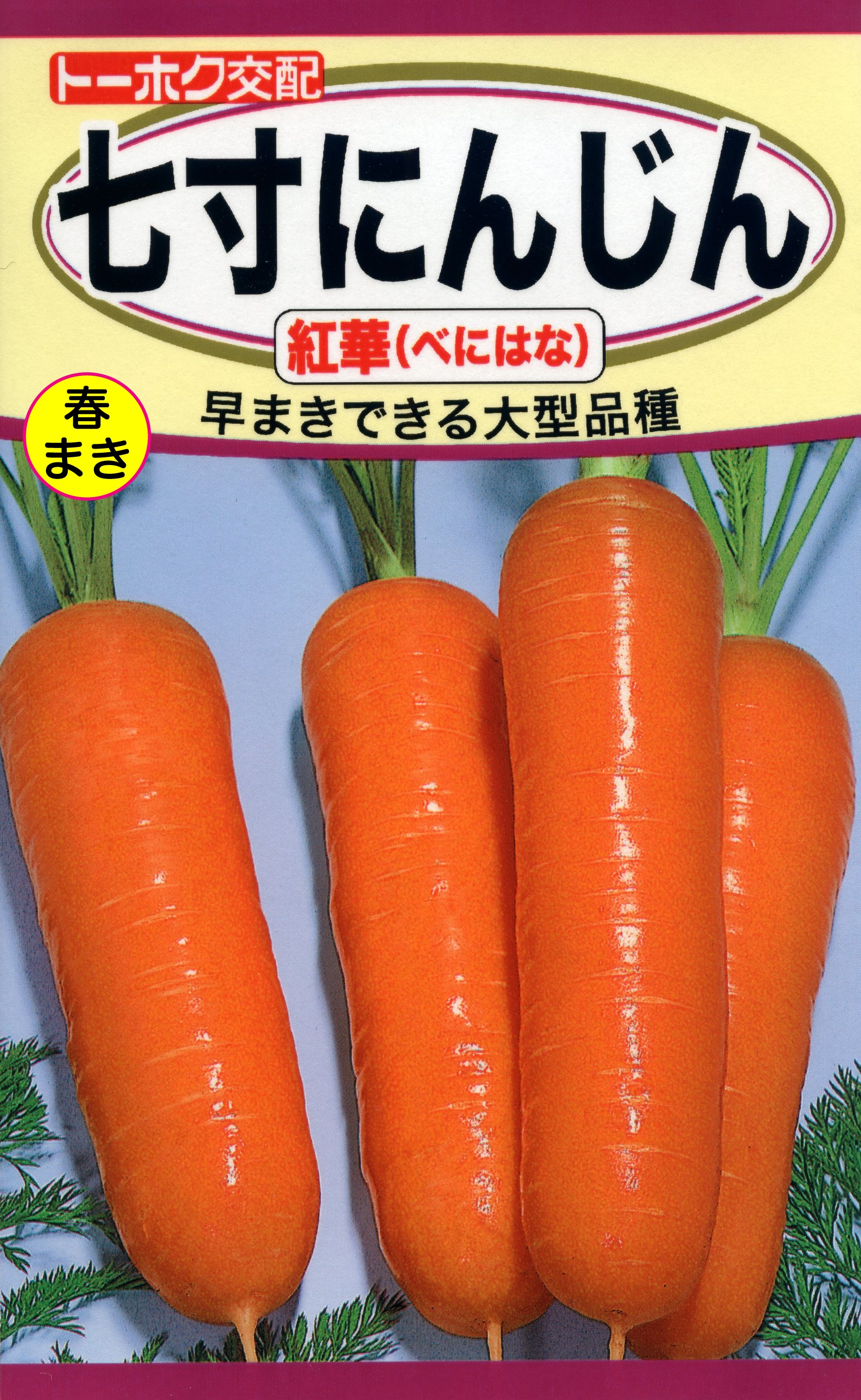 | 上品な甘さとニンジン臭を感じないすっきりとした味わい | 根の先端まで良く太るきれいな円筒形で、裂根も少なく耐病性で作りやすい。 | とう立ち遅く病気に強く安定収量。鮮紅色できれいな円筒形で良く揃う。 | 初夏まきに有効。生育旺盛で太りも良く尻止まり良い。肉質やわらかく良食味。 | フルーツ感覚で美味しい。芯まで色良く、生でのサラダやジュースは格別です。 | とう立ちの心配少なく、馬力のあるタイプ。冷涼地の早まきで多収が望めます。 | 香り豊かで肉質ち密。歯切れが良いので、きんぴらなどに最適の大長種 | 根が地中にもぐり込み、寒さを避けます。秋から早春にかけて掘取って利用します | 肉質はち密で甘味に富み、極めて丈夫で作りやすく寒さにも耐え冬越しできます |