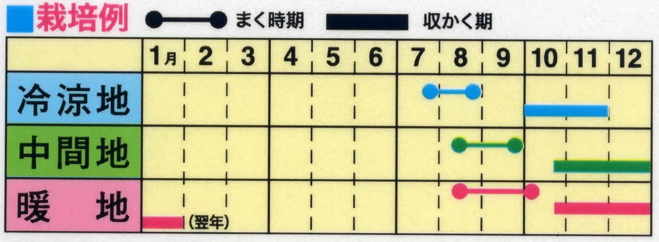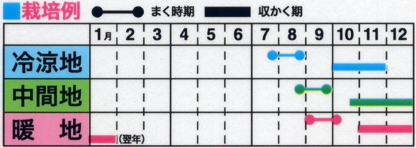 肉質はち密で風味もよく、肌も純白で美しく仕上がり、たくあん漬けに最も品質が良いとされています。す入りも遅く、収穫時も抜きやすい品種です。