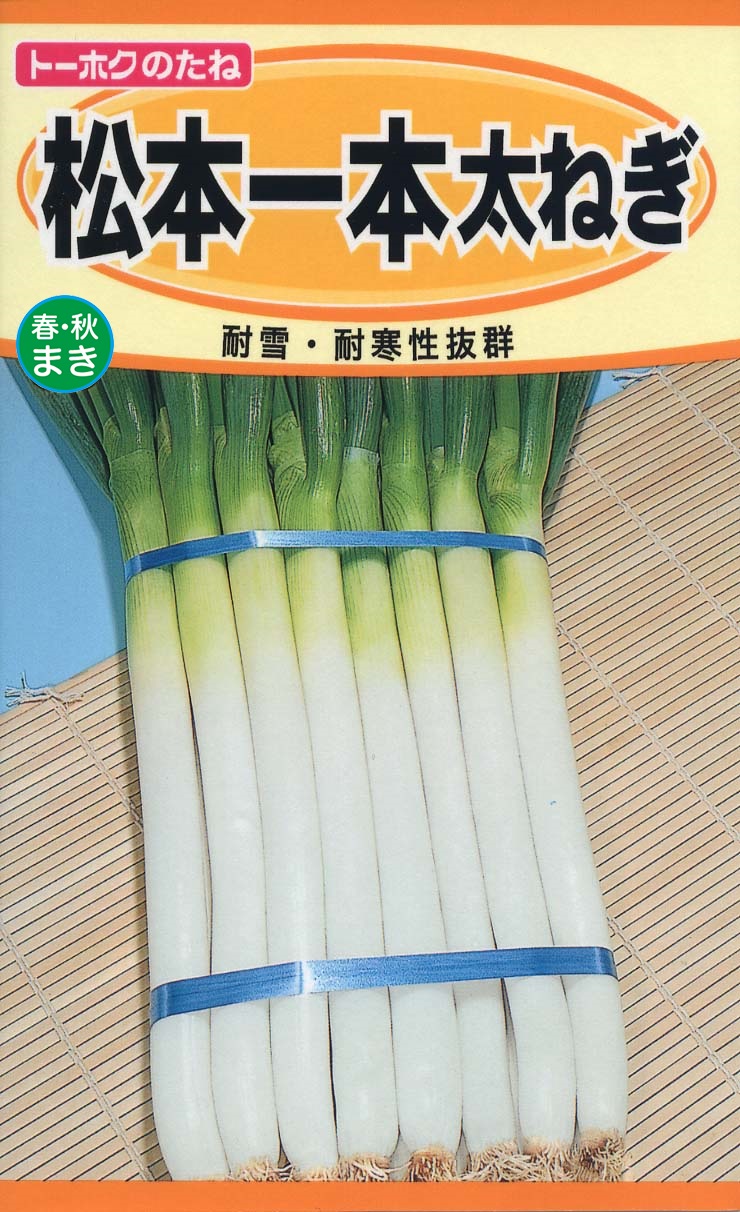長野県松本郊外で育てられた伝統的な品種。積雪地の雪の下でもよく耐え、寒冷地での越冬性にも優れます。やわらかく極めて甘いのが特長の一本太ねぎ。
