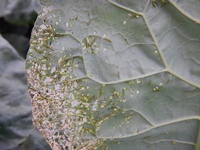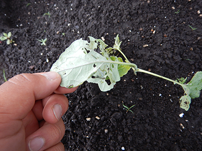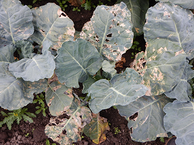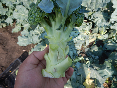 ブロッコリーの病気・害虫・生理障害 小 大 文字サイズ 黒腐れ病 病気 【黒腐れ病】 雨の多い時に発生し、葉の周辺から黄色くなってくるのが特長です。風雨によって土のはね返りで感染します。病気に侵された葉は二次感染の伝染源になりますので、早目に畑から持ち出し処分します。 黒斑細菌病 病気 【黒斑細菌病】 雨などのはね返りによって侵入して起こる病気です。台風などの風雨で株が傷ついた場合などに多発します。病気に侵された葉が二次的な伝染源になるので、病気に罹った葉は摘んで早目に畑から除去しましょう。 べと病 病気 【べと病】 葉の裏に灰色のカビが生える病気です。気温が15~20℃位で多湿条件が重なると発生しやすく、カビから胞子が飛び周囲に伝染して広がっていきます。収穫物の花蕾にも黒変する病状を示す場合もあります。陽当たりと風通しを良くすることが大事です。 ヨトウムシ類 害虫 【ヨトウムシ類】 成虫が卵をまとまって生み落とし、孵化した幼虫が集団で食害を始めます。短期間に葉脈を残して食べつくされることもあるので見つけ次第早急に駆除する必要があります。 ホウ素欠乏症 生理障害 【ホウ素欠乏症】 植物の生育、特に細胞壁の形成に必要なホウ素の欠乏によって引き起こされる生理障害。亀裂が生じてその後コルク化してかさぶたのようになりますが、食用に問題ありません。畑の肥料成分のバランスが崩れている可能性があります。堆肥などの積極的利用が有効です。