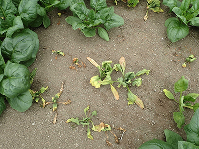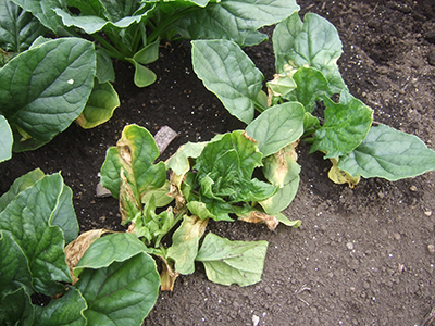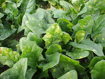 ホウレンソウの病気・害虫・生理障害 小 大 文字サイズ 萎凋病 病気 【萎凋病】 下葉から黄化が起こり、その後萎凋が進み最終的に枯死します。主に7~9月の高温期の夏どり栽培で発生する土壌伝染性の病気です。発病した畑での連作は避け、被害が甚大な場合は土壌消毒が必要です。 えそ萎縮病 病気 【えそ萎縮病】 アブラムシによって運ばれるウイルス病。初期は中心部に軽いモザイク症状があるだけですが、その後葉が縮れて萎縮し、生長が止まって下葉から枯れていきます。防虫ネットなどで防ぐなど、アブラムシの防除を徹底させる必要があります べと病 病気 【べと病】 春と秋の気温が15~20℃で雨天・曇天が続いた時に発生しやすいカビの病気。外葉から斑点状に黄変し、裏側に灰色のカビが生えてきます。肥料が多すぎて軟弱気味に生育した株に発生しやすいので多肥栽培を避け、株間を充分にとって風通しを良くします。 ホウレンソウケナガコナダニ 害虫 【ホウレンソウケナガコナダニ】 肉眼では見えない位小さい害虫です。土の中に生息してほうれん草の新芽部分を食害します。食害された葉には小さな穴があき、展開にすると奇形状態になり、ひどい場合は芯止まりとなります。残渣や未熟堆肥などが発生源と言われていますので注意しましょう。