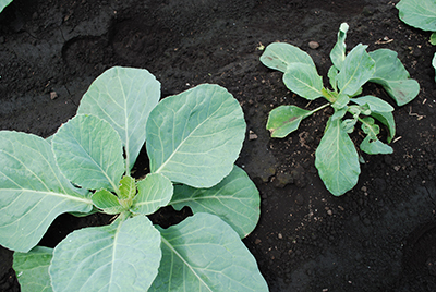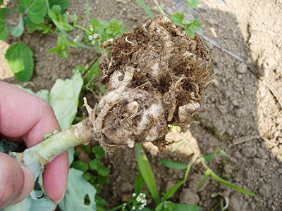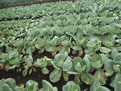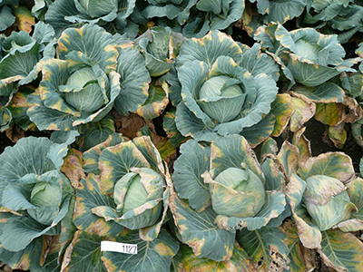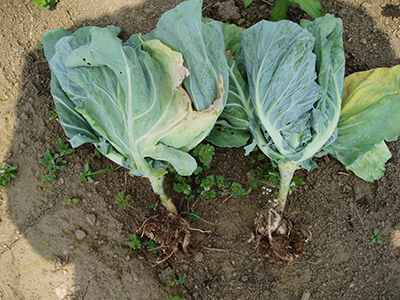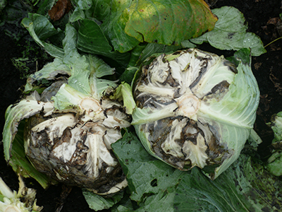 キャベツの病気・害虫・生理障害 小 大 文字サイズ 尻腐れ病・株腐れ病 病気 【尻腐れ病・株腐れ病】 初夏から秋どり栽培で雨の多い年に多発する病気。病原菌は被害茎葉と一緒に土中に残るので連作は避けます。排水対策が重要です。 根こぶ病 病気 【根こぶ病】 日中のしおれが激しく、夕方には回復しますが生育が止まります。引き抜くと根にこぶができており、放置するとこぶは破裂し、その後枯れます。水はけの良くない畑に発生しやすく、以前にも同様の症状が出た畑では、高うねにするなどの対策が必要です。連作障害の一種ですので、アブラナ科野菜の連作は避けましょう。 黒腐れ病 病気 【黒腐れ病】 雨の多い時に発生し、葉の周辺から黄色くなってきます。台風などの強い風雨によって土の中にいる病原菌がはね返り感染し、病気に侵された葉は二次感染の伝染源になります。病気に罹った株は早目に畑から持ち出し処分します。 黒斑細菌病 病気 【黒斑細菌病】 春と秋の比較的温暖で雨の多い時期に発生しやすい病気です。アブラナ科野菜全般に発生しますので発病株は早目に処分し、連作を避けることが後作のためには有効です。また畑の水はけを良くして、軟弱に育てないことも大事です。 菌核病 病気 【菌核病】 強い雨などで土のはね返りなどが葉と葉の間に入って、湿度の高い状態が続くと感染するカビの病気で、最終的には黒い塊ができます。肥料をやり過ぎて軟弱に育った株に発生しやすいので注意が必要です。発生した株は汚染源になるので早急に引き抜き、畑以外の場所で処分します。 べと病 病気 【べと病】 発病した葉の裏を見ると灰色のカビが生えています。気温が15~20℃位で多湿条件が重なると発生しやすく、カビから胞子が飛び周囲に伝染して広がっていきます。育苗中は夕方以降の水やりを控え、陽当たりと風通しを良くしましょう。 ヨトウムシ類 害虫 【ヨトウムシ類】 成虫が卵をまとまって生み落とし、孵化した幼虫が集団で食害を始めます。短期間に葉脈を残して食べつくされることもあるので見つけ次第早急に駆除する必要があります。 ハイマダラノメイガ・ダイコンシンクイムシ 害虫 【ハイマダラノメイガ・ダイコンシンクイムシ】 やわらかい幼苗時に幼虫が生長点を食害して侵入し、芯がなくなった状態になり、回復しません。株が大きくなると被害はないので、特に注意が必要な7月下旬から8月下旬までは防虫ネットなどで利用して防ぐことは重要。 コナガ 害虫 【コナガ】 成虫は肌色の小さな蛾。幼虫は葉の裏のやわらかい部分を食害します。特に気温の高い時期に多く発生するので、夏まき栽培では生育初期に防虫ネットなどを使って防ぎます。 カブラヤガ・ネキリムシ 害虫 【カブラヤガ・ネキリムシ】 夜の間に活動して株元をかじり、苗を倒して枯らせる蛾の幼虫が原因です。被害に遭った株元を数cm掘れば、犯人の幼虫が見つかりますので隣の株に移動する前に見つけて捕殺処分します。軟弱な苗をねらう傾向にあるので、葉枚数の多いしっかりとした苗を作ることも予防になります。 カルシウム欠乏症 生理障害 【カルシウム欠乏症】 急激に育って肥料をうまく吸えなかった場合や暑さで発症するケースが多い生理障害で、外葉や内葉に枯れた葉が混じります。 生育初期の乾燥や大雨によって根が十分に発達してない場合、その後の天候回復によって一気に成長した時などに頻発します。ただ発症してからの改善方法はないので、生育途中に乾燥が激しい場合は適時水やりをし、大雨で根が傷んでいると思われる場合は中耕して根の回復を促すなどが予防策として効果的です。 また暑すぎる時期の収穫にならないようタネまきのタイミングも調整しましょう。 ホウ素欠乏症 生理障害 【ホウ素欠乏症】 春の気温が急激に上昇する時期に肥料吸収のバランスが崩れて発生しやすく、芯の中心部が縦長に変色します。 落ち葉たい肥などを用いての畑の土づくり、有機質肥料を中心とした栽培などが発生の抑制に有効です。 内部黒変症 生理障害 【内部黒変症】 冬期に内部の水滴が寒さによって氷結と解凍を繰り返した際、水滴付近の内葉が傷むことで発生する凍害痕と考えられています。 畑の乾燥や急激な気温低下は発生を助長することもあるので、適時のかん水やベタ掛けなどの保温資材の利用などが予防に有効です。また肥料のやり過ぎも発生を助長するので注意しましょう。