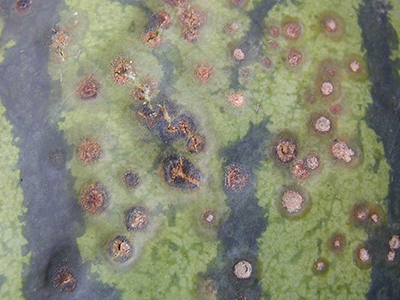 スイカの病気・害虫・生理障害 小 大 文字サイズ 炭そ病 病気 【炭そ病】 雨が多く、気温がやや低い年に発生する病気です。葉や茎に楕円形の褐色の病斑ができて枯れていき、果実表面には黒い油じみのようなくぼみができます。連作を避け、水はけの良い畑を選び、敷きわらをして土のはね返りを防ぎます。 つる枯れ病 病気 【つる枯れ病】 茎の地ぎわ部で発生することが多く、病状が進むとその先の茎葉が枯れてしまう病気です。育苗中にも発生し、高温多雨の時期に多発します。連作を避け、排水と日当たりの良い畑を選び、病気に罹った葉は早目に摘み取りましょう。