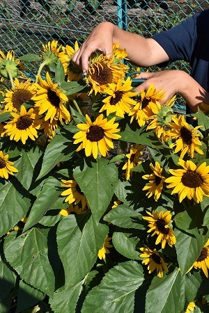 一方コンサートベルは咲きだすと花数が多いことと、それらが360度全方向に向かって開花する特性から、どこから眺めてもヒマワリの花を楽しめます。