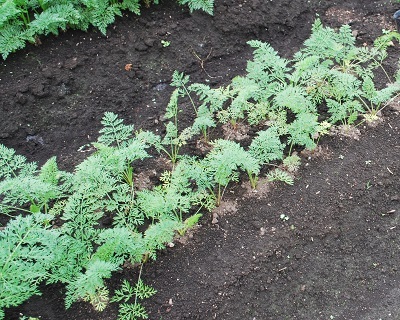 ニンジンについても実験をしてみました。8月にタネまきして11月の末に収穫する計画で、畑と同時に9cmポットにタネをまきました。生育に伴い間引きを行い、タネまきから約1カ月後のポット苗を畑に移植しました。