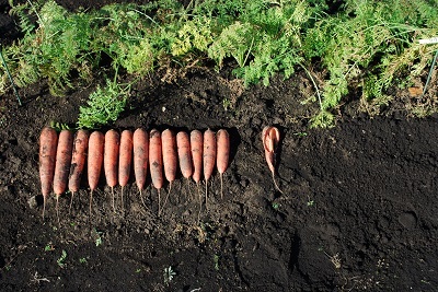 しかし収穫したニンジンを見てみるといずれも短く、先端は又根状になって細かい根がトグロを巻くようにかたまっていました。食味を調べたところ、みずみずしさに欠け、甘みも感じられませんでした。