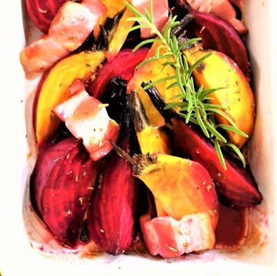 赤いサラダビーツと黄色のゴールデンビーツを使ったオーブン焼き