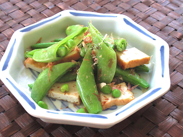 ボウルに、①と②を入れ、サラダオイル、しょうゆ、削り節を加えて和える。