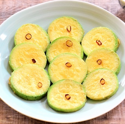 ゴマ油をフライパンに1mmほど入れて熱する。①を②にくぐらせて弱火でじっくりと両面を焼く。