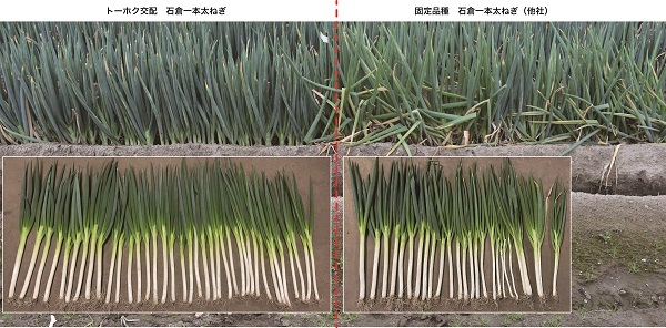 甘とろ太ねぎの例は見た目にもはっきりしているのでわかりやすかったと思いますが、石倉一本太ねぎのF1品種と固定品種と差を紹介します。