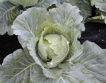 さて第1話では、キャベツは祖先種のケールから人の手によって選抜淘汰され、結球するようになったという話をしました。また、キャベツが生育する連続写真を眺めた結果から、キャベツが結球するのは生長するにつれて葉が中心に密集していく結果、外側の葉が内側の葉が開くのを邪魔し、やがて葉どうしが引っかかってしまうため、という“結球引っかかり説”を提唱しました。