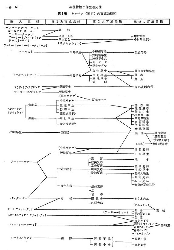 キャベツ(固定種)の育成系統図(農業技術体系野菜編 第7巻より)