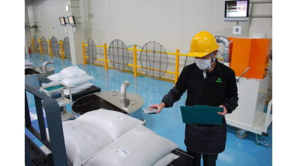 また機械士が定期的に抜き取り、規定量の種子が入っているかを確認します。そしてこの後、サンプルが抜き取られ最終的な発芽検査にまわされます。