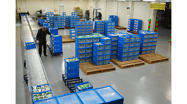 ここで商品ごとに仕分けられ、一時貯蔵庫に搬入されます。